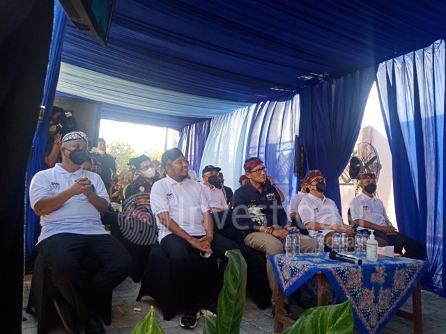 Sumenep, Investigasi.today – Bupati Sumenep Ahmad Fauzi, SH MH, bersama Forkopimda dan Pimpinan OPD dan masyarakat setempat antusias menyambut Kunjungan Kerja  Kementerian Pariwisata dan Ekonomi Kreatif (Kemenparekraf) Sandiaga Uno di Desa Aeng Tong Tong Kecamatan Saronggi Kabupaten Sumenep.