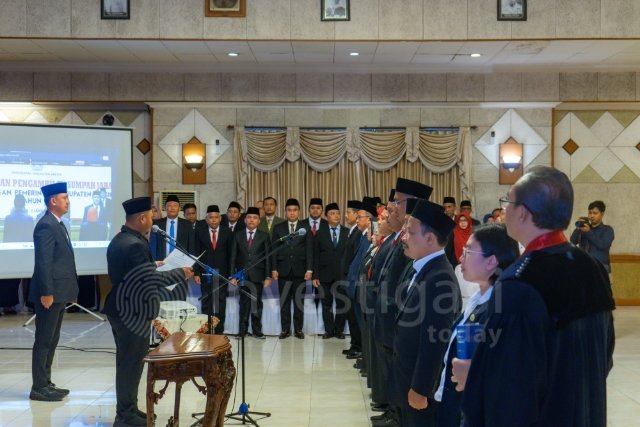Gresik, Investigasi.today – Bupati Gresik Fandi Akhmad Yani mengambil sumpah dan melantik 55 kepala sekolah serta 21 pejabat fungsional di lingkungan Pemerintah Kabupaten Gresik. Pelantikan tersebut berlangsung di Ruang Mandala Bhakti Praja, Kantor Bupati Gresik, pada Senin (5/1/26).