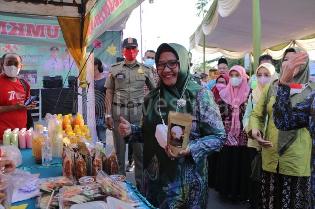 Gebyar Perdana Bazar Produk UMKM sekaligus sebagai bentuk kepedulian pemerintah daerah terhadap IKM atau UMKM agar segera bangkit dalam rangka pemulihan dan peningkatan perekonomian pasca pandemi,” Tandasnya.