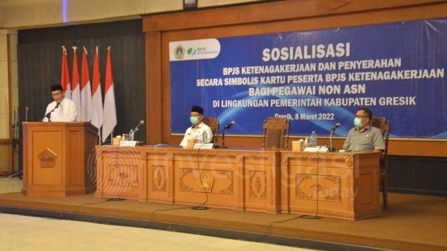Kepala BKPSDM Kabupaten Gresik Khusaini dalam laporannya menjelaskan bahwa dengan diadakannya kegiatan sosialisasi yang diadakan hari Selasa, (08/03), di ruang Mandala Bhakti Praja lantai 4 Kantor Bupati Gresik ini diharapkan bahwa tenaga non- ASN di lingkungan Pemerintah Kabupaten Gresik yang berjumlah 3.982 orang ini bisa paham mengenai BPJS Ketenagakerjaan serta tahu apa saja program-program dan manfaat BPJS Ketenagakerjaan di lingkup Kabupaten Gresik.
