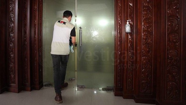 Beberapa penyidik tampak membawa tiga koper. Dua di antaranya berwarna hitam, dan satu sisanya berwarna merah.