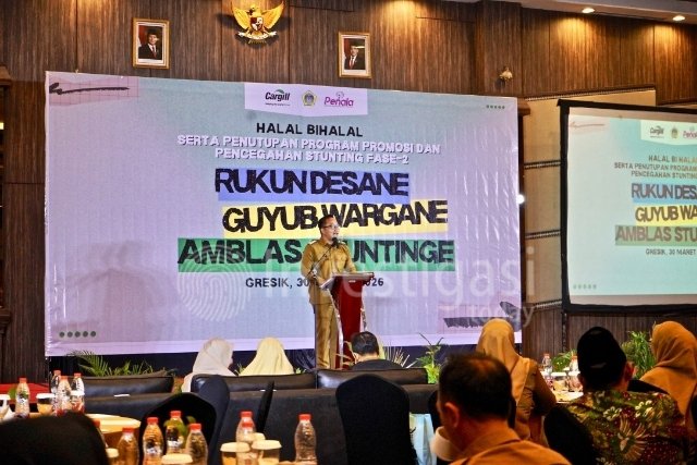 Penutupan fase kedua program dikemas dalam kegiatan bertajuk “Penutupan Program Promosi dan Pencegahan Stunting di Desa Fase 2: Refleksi dan Strategi ke Depan”, yang dirangkaikan dengan Halal Bihalal di Hotel Horison Gresik, Senin (30/3/2026).