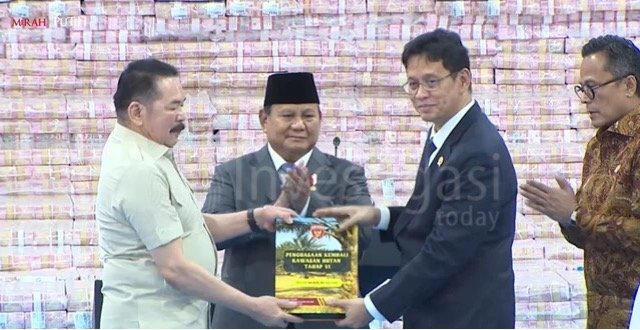 Prosesi penyerahan yang sarat makna ini dilakukan Jaksa Agung ST Burhanuddin kepada Menteri Keuangan Purbaya Yudhi Sadewa, dengan Presiden Prabowo berdiri tegak di tengah sebagai saksi utama komitmen pemerintah dalam menegakkan hukum dan memulihkan keuangan negara.