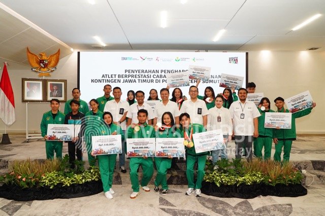 Gresik, investigasi.today – Petrokimia Gresik, perusahaan Solusi Agroindustri anggota holding Pupuk Indonesia, sekaligus Pembina Persatuan Senam Indonesia (Persani) Jawa Timur memberikan apresiasi berupa bonus dengan total ratusan juta rupiah untuk atlet senam Jawa Timur yang berhasil mendapatkan medali dan official di ajang Pekan Olahraga Nasional (PON) XXI Aceh. Apresiasi diserahkan secara simbolis oleh Direktur Keuangan dan Umum Petrokimia Gresik, Robby Setiabudi Madjid, di Gresik, Jawa Timur, baru-baru ini.