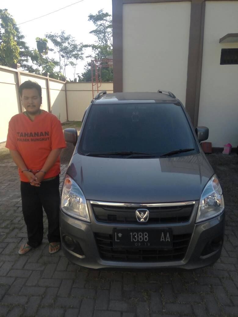 “Tersangka kami tangkap saat berada di rumahnya. Ada pun barang bukti yang telah kami amankan berupa satu unit mobil Karimun Wagon R.