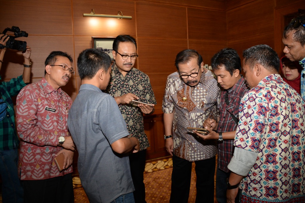 menjawab pertanyaan media, di Kantor Gubernur Jawa Timur Jl. Pahlawan 110