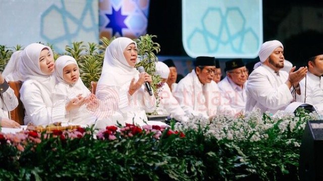 Di momen spesial tersebut, Khofifah mengajak warga Jatim mengakhiri tahun 2025 dengan penuh syukur serta memohon keberkahan dan keselamatan bagi Jawa Timur dan Indonesia di tahun 2026 lewat lantunan doa serta selawat.