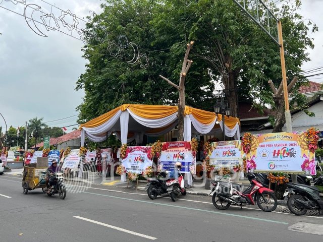 Hari Pers Nasional, Puluhan Karangan Bunga Hiasi Balai Komunitas Wartawan Gresik di Bandargrisse