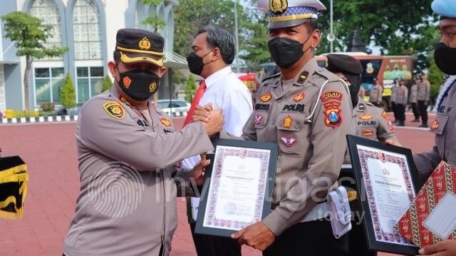 Gresik, Investigasi.today – Kapolres Gresik AKBP Mochamad Nur Azis memberikan apresiasi kepada 23 personelnya yang berhasil bekerja dengan baik. Penghargaan diberikan langsung saat memimpin apel di halaman Mapolres Gresik. Senin (5-9-2022).