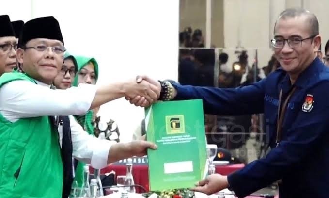 Berkas tersebut diterima langsung oleh Ketua KPU RI Hasyim Asy’ari dari Plt. Ketua Umum (Ketum) PPP Muhammad Mardiono, di Ruang Sidang Utama, Kantor KPU RI, Jakarta, Jumat sore, sekitar pukul 16.00 WIB.