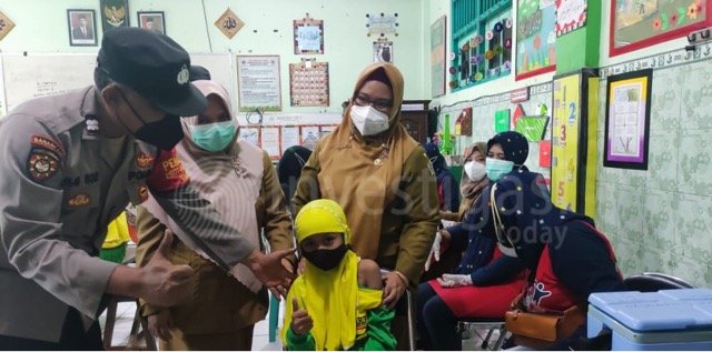 “Tidak perlu takut di vaksin ya. Ini semua agar adik-adik sehat, dan nantinya bisa masuk sekolah bersama teman-teman kalau virusnya sudah tidak ada,” ujar Bu Min kepada anak-anak.