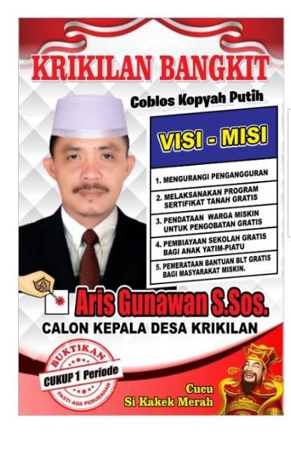 Aris menyampaikan tekat kuatnya di pemilihan Kepala Desa Krikilan untuk kali ini. “Saya hanya berusaha semaksimal mungkin mas, untuk hasil kita berserah saja,” ungkapnya, Kamis (24/2).