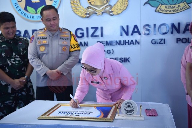 “Program ini menjadi bukti nyata komitmen Polres Gresik dalam mendukung program pemerintah mencetak generasi penerus yang sehat, cerdas, dan berdaya saing,” tutur Ny. Yanggi sebelum melakukan pemotongan pita dan penandatanganan prasasti.