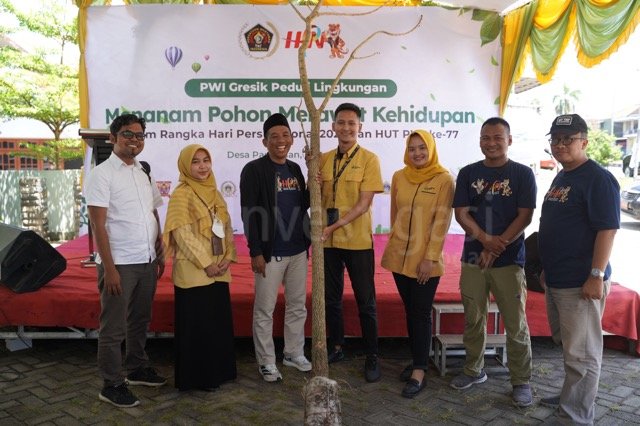 Ketua PWI Gresik, Ashadi Ikhsan dalam sambutannya menyampaikan bahwa imbas dari pelebaran jalan di sepanjang jalan Desa Pandanan, banyak pohon yang ditebang. Maka dari itu diperlukan reboisasi.