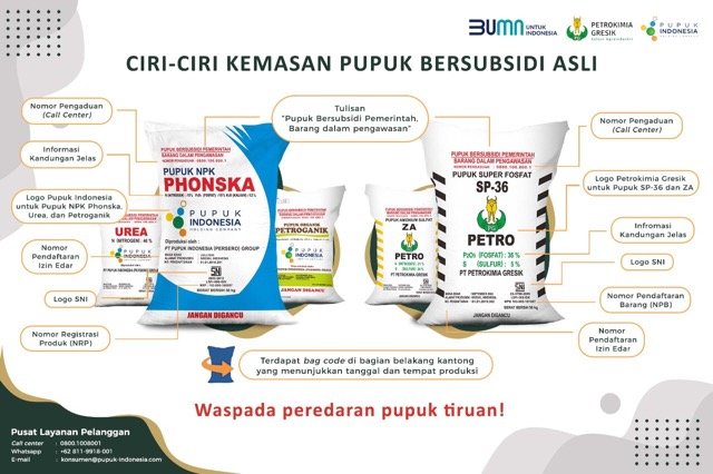 Selain upaya di atas, petani juga dapat memastikan keaslian pupuk bersubsidi dengan menghubungi layanan pelanggan Pupuk Indonesia di 0800 1008 001 (Call Center), 0811 9918 001 (WhatsApp), atau dapat melalui email konsumen@pupuk-indonesia.com.