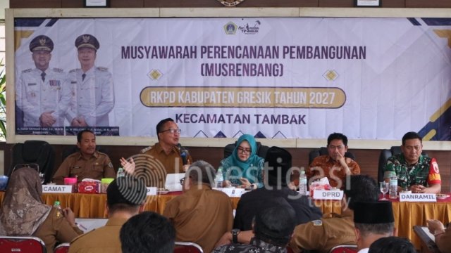 Gresik, Investigasi.today – Wakil Bupati Gresik Asluchul Alif didampingi Ketua Gabungan Organisasi Wanita (GOW) Shinta Puspitasari menggelar Musyawarah Pembangunan Daerah (Musrenbang) Rencana Kerja Pembangunan Daerah (RKPD) tahun 2027. Kegiatan ini digelar di Pendopo Kecamatan Tambak, Senin (9/2/2026) kemarin.