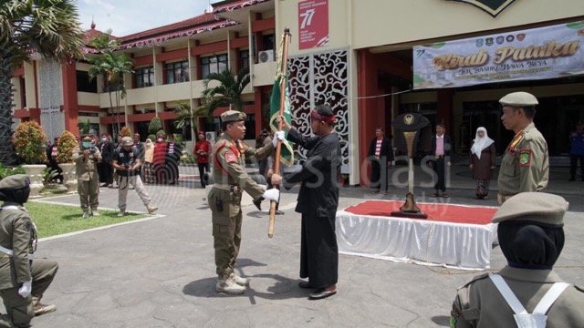 Sekedar diketahui bendera Pataka Jer Basuki Mawa Beya, Pataka Satuan Polisi Pamong Praja Wibawa, Pataka Perlindungan Masyarakat (Linmas) serta Pataka Satuan Pemadam Kebakaran dan Penyelamatan, pada Hari Jadi ke-77 Provinsi Jawa Timur dikirab secara estafet di 38 Kabupaten/Kota seluruh Jatim dengan jarak tempuh mencapai 2.000 kilometer.