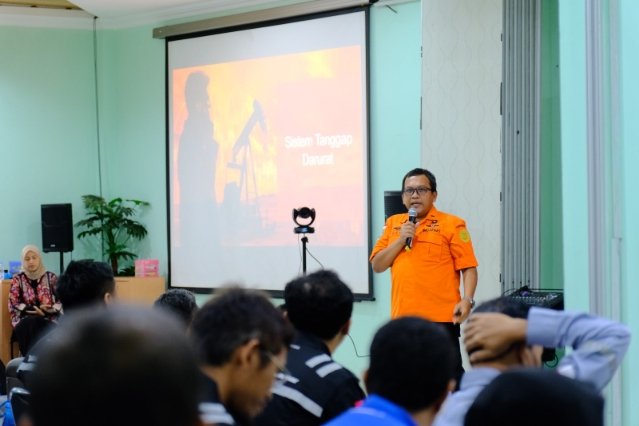 Selanjutnya, materi kedua disampaikan oleh Johan Saptadi dari Badan Nasional Pencarian dan Pertolongan (Basarnas) Surabaya yang mengulas sistem tanggap darurat di lingkungan kerja.