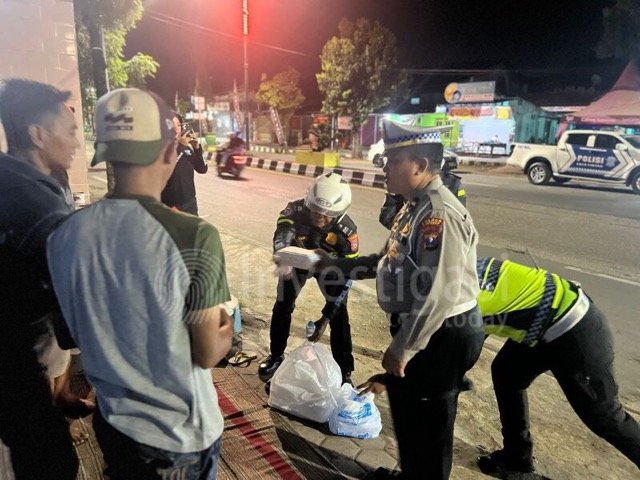 Kegiatan tersebut dipimpin langsung oleh Kasat Lantas Polres Sumenep Beny Kuncoro, S.Tr.K., S.I.K., bersama KBO Satlantas, Kanit Turjagwali, personel Unit Kamsel, serta anggota Unit Turjagwali Satlantas Polres Sumenep. Selain menyapa warga yang masih beraktivitas menjelang waktu sahur, petugas juga membagikan santap sahur kepada masyarakat sekitar.