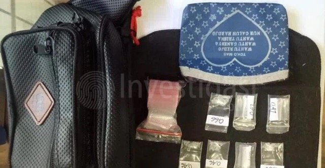 Saat tas warna hitam itu dibuka oleh petugas, terdapat satu buah dompet yang di dalamnya berisi 7 poket sabu dengan berat 3,27 gram.