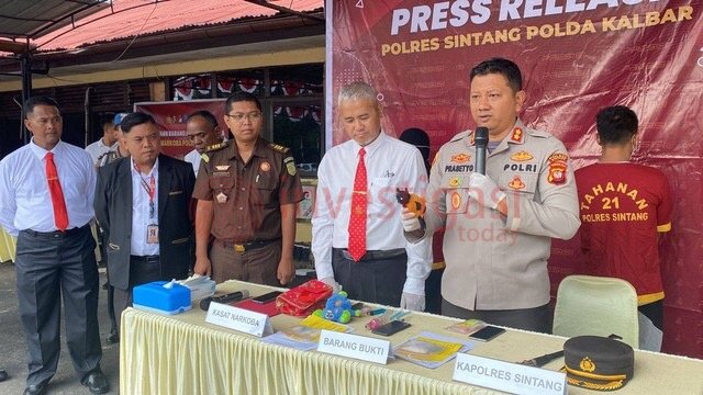 “Petugas menangkap tersangka M di rumahnya jalan Teuku Umar RT 006 RW 002 Kelurahan Ladang, Kecamatan Sintang Kabupaten Sintang,” terang Kapolres.
