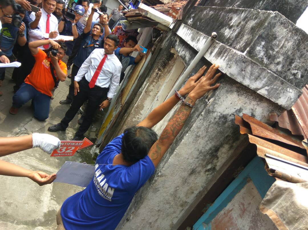 ) Polrestabes surabaya yang di pimpin Iptu Bima Sakti, menggelar rekontruksi