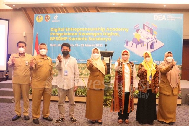 Mojokerto, Investigasi.today – Para pelaku Usaha Mikro Kecil Menengah (UMKM) di Kabupaten Mojokerto berkesempatan meningkatkan Sumber Daya Manusia (SDM) dengan diadakannya pelatihan Digital Entrepreneurship Academy (DEA) Pengelolaan Keuangan oleh Dinas Komunikasi dan Informatika (Diskominfo) Kabupaten Mojokerto, yang bertempat di hotel Ayola, Kota Mojokerto, Selasa, (21/3) pagi.
