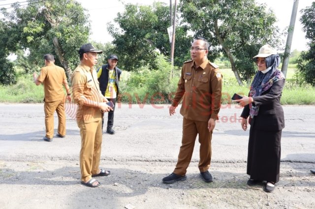 Wakil Bupati Gresik dr. Asluchul Alif didampingi Kepala Dinas Pekerjaan Umum dan Tata Ruang (PUTR) Kabupaten Gresik Dhiannita Tri Astuti, melakukan pengecekan jalan yang menghubungkan Kecamatan Balongpanggang Gresik ke Mantup Kabupaten Lamongan.