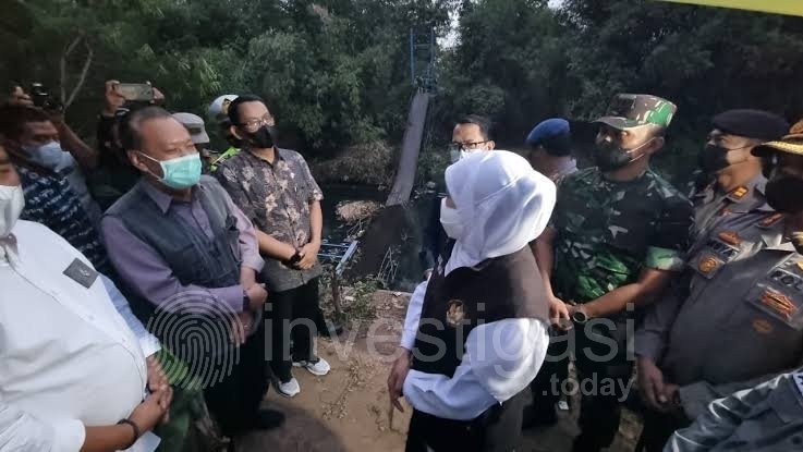 Probolinggo, Investigasi.today – Gubernur Jawa Timur, Khofifah Indar Parawansa didampingi sejumlah pejabat di lingkungan Pemerintah Provinsi (Pemprov) Jawa Timur meninjau lokasi ambruknya jembatan gantung di Desa Kregenan Kecamatan Kraksaan, Kabupaten Probolinggo, Jum’at (9/9/2022) sore.