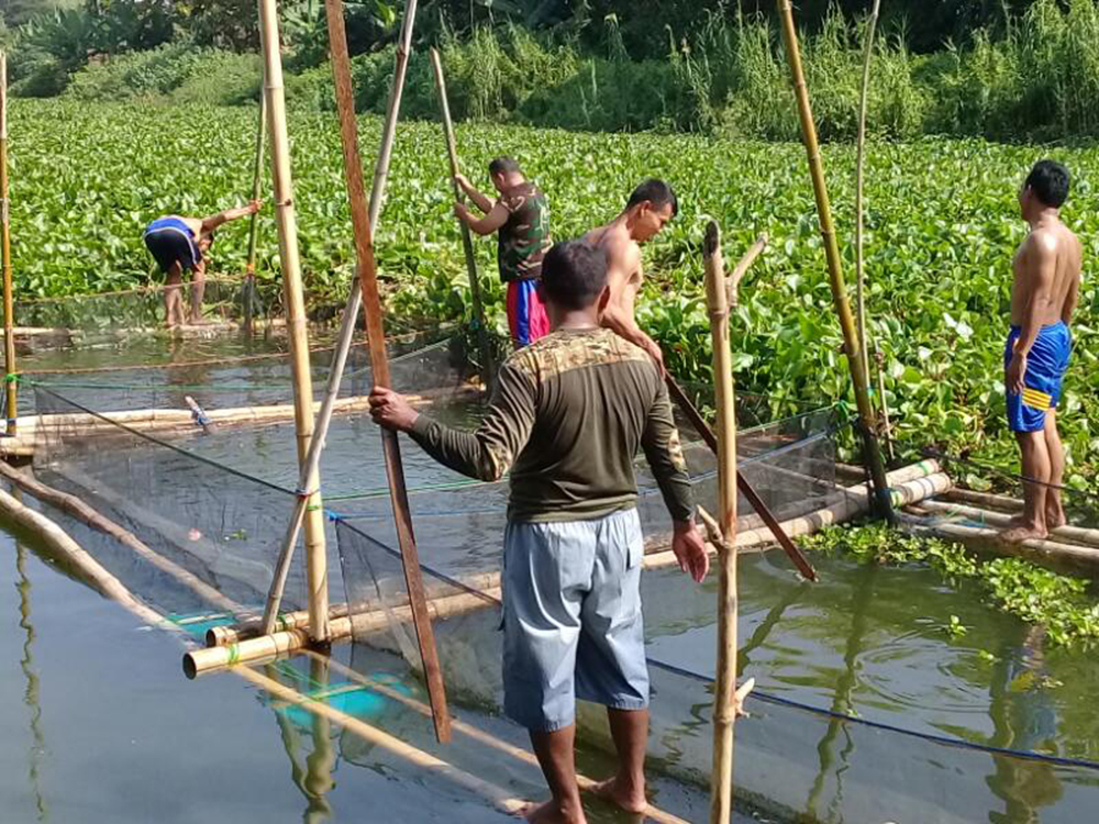 Glagah Kapten Inf Muh Mauzi dalam aksi bersih-bersih enceng gondok tersebut