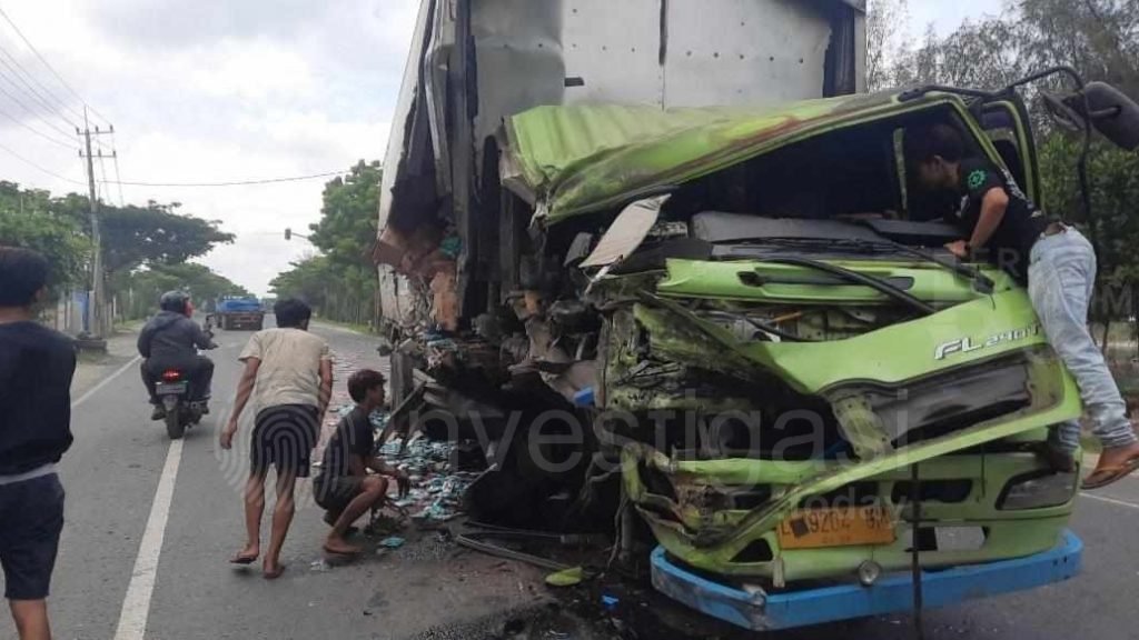Pada saat sampai di lokasi kendaraan truk box yang bermuatan makanan ringan itu melaju dengan kecepatan tinggi. Selanjutnya, truk box itu oleng kanan dan dari arah berlawana melaju truk trailer pengangkut besi dengan Nopol L 9763 UI yang dikemudikan oleh Sunardi (49), warga Desa Lengkong, Kecamatan Cerme, Gresik.
